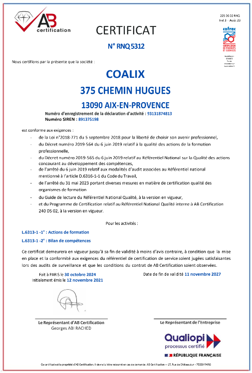 L’équipe pédagogique de COALIX se compose de professionnels alliant compétences pédagogiques et vécus professionnels.